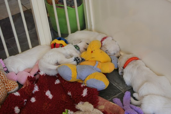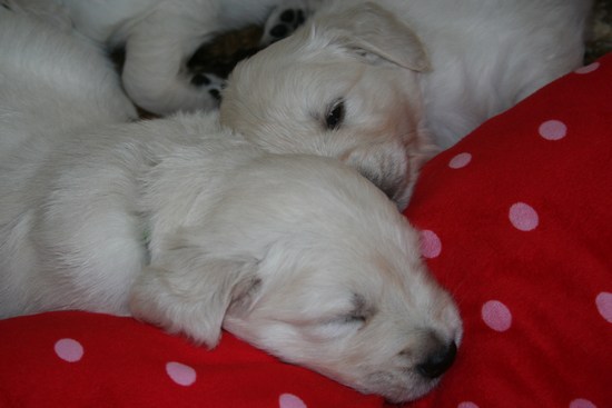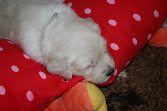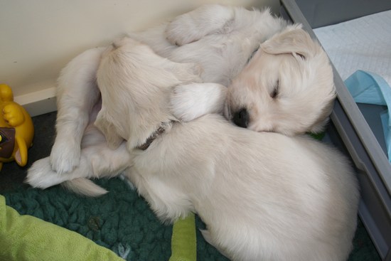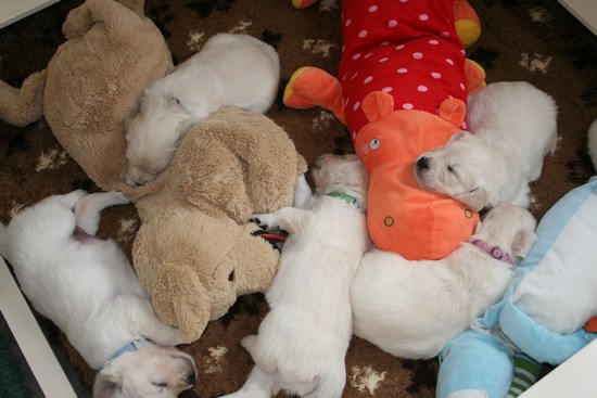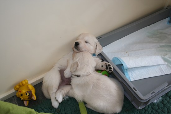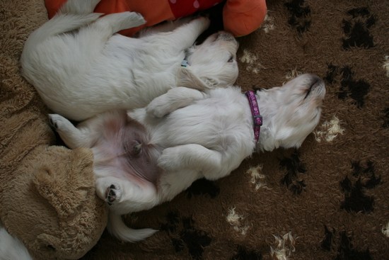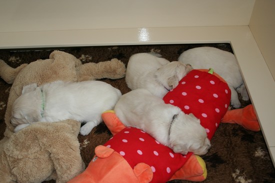 Ooo toch niet . ik val in slaap. | Pups hebben de buikjes rond. |