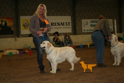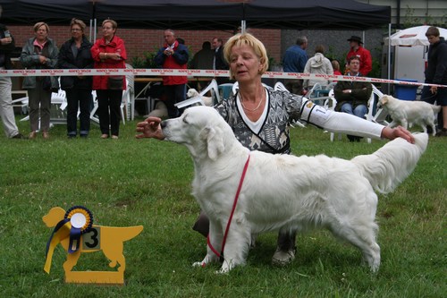 Kampioensclubmatch Golden Retriever Club Nederland te Harich 3 september 2011 The Golden Challenge Forever Mine ( Bente ) werd 3e in de baby klasse Keurmeester Mr. A. Stepinski. ( polen) |