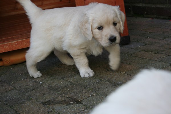 Voor de eerste keer naar buiten. |