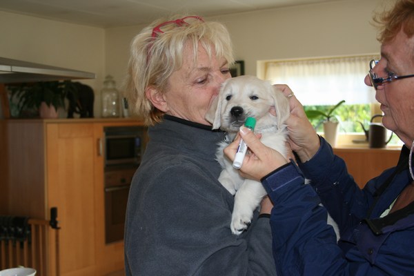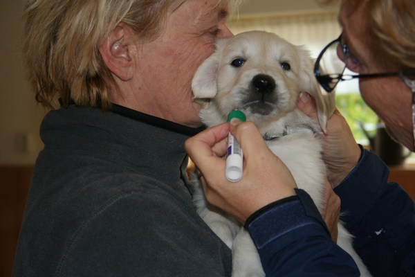Er wordt DNA van de pups genomen. |